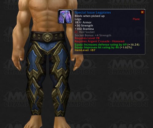 特级板甲护腿 拾取后绑定 腿部 板甲 1831护甲 +30力量 +102耐力 需要等级78 装备:增加防御等级69点 装备:增加命中等级46点