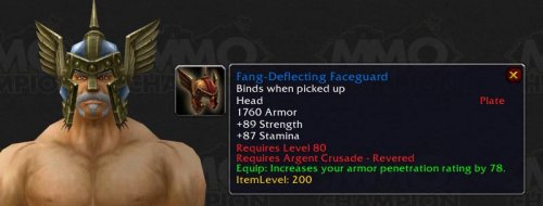 扭曲利齿头盔 拾取后绑定 头部 板甲 1760护甲 +89力量 +87耐力 需要等级80 装备:增加护甲穿透等级78点