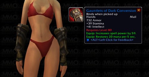 锁甲手套 732护甲 +39耐力 +41智力 需要等级80 装备:增加法术强度59 装备:每5秒回复20点魔法值