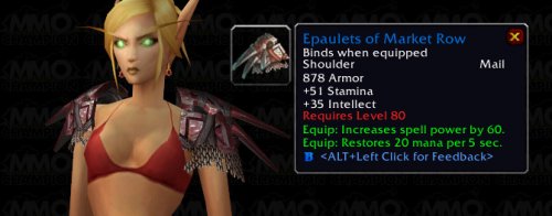 锁甲肩膀 878护甲 +51耐力 +35智力 需要等级80 装备:提高法术强度60 装备:每5秒回复20点魔法值