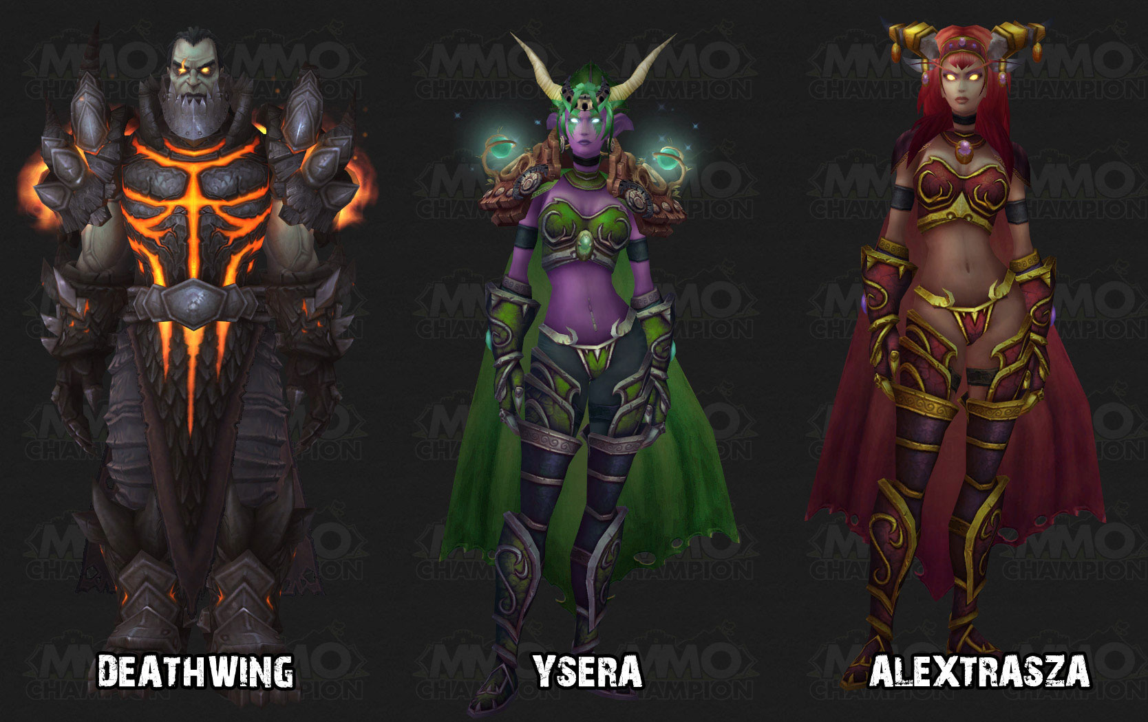 左起死亡之翼,绿龙伊瑟拉,红龙阿莱克斯塔萨