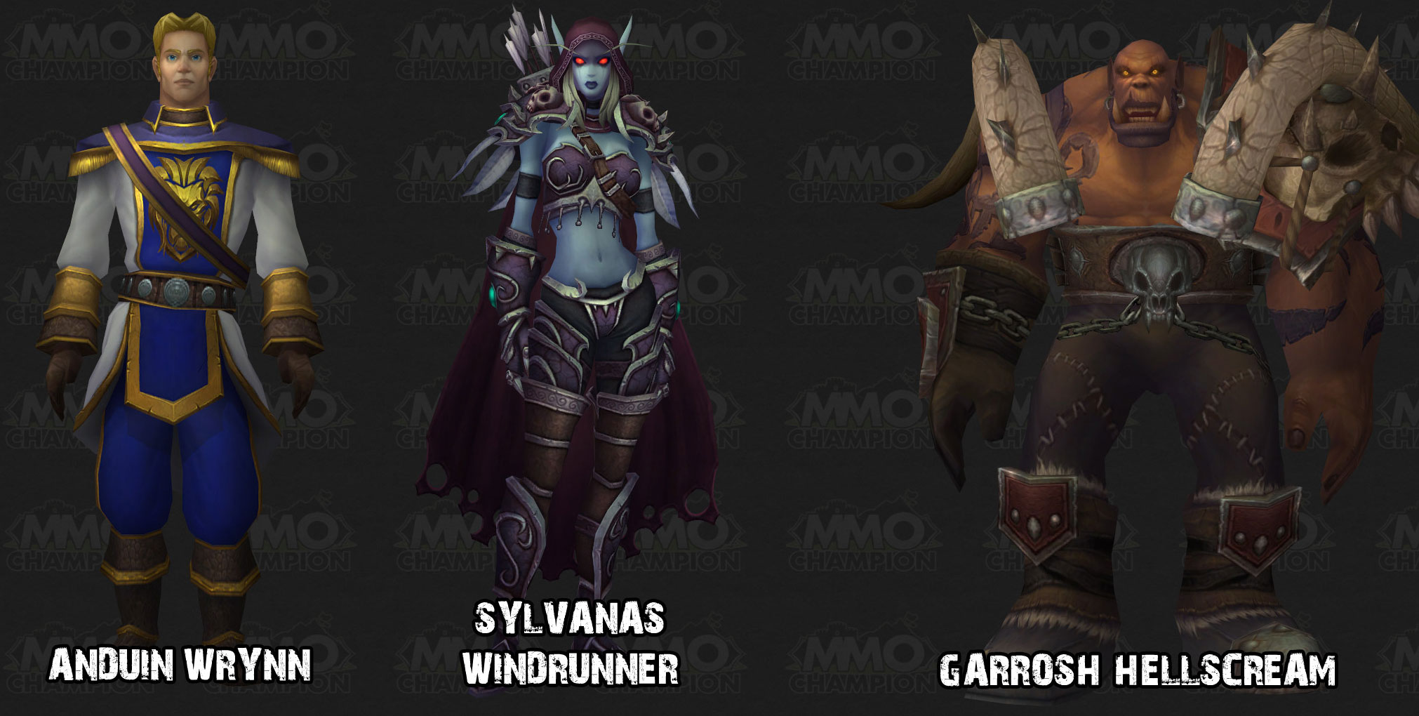 左起长大后的暴风城小王子、希尔瓦娜斯、部落新酋长小地狱吼
