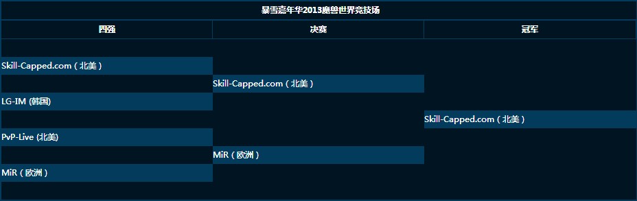 决赛队伍简介: 北美:Skill-Capped.com Alex “Sodah”——德鲁伊 Rodney “Talbadar”——牧师or萨满(本次比赛中选择了元素萨) Adam “Chanimals”术士 Sodah和Talbadar对《魔兽世界》的竞技场可谓是了如指掌,但他们之前从未在一个战队内合作过。在他们多年的交手过程中,两人对彼此都尊敬有佳。两人在今年希望借助彼此的技巧,以及Chanimals操作术士的经验,来和世界上所有的高手一决高下。这三名选手将代表致力于培养和提高《魔兽世界》PvP技巧的Skill-Capped.com网站出战。 欧洲:MiR Jonathan “Minpojke”德鲁伊 Mathias “Zunniyaki”牧师 Youness “Nóliferqt”法师 MiR的成员是在竞技场第13赛季正式开始后的2个月(2013年5月)互相结识的。小组的三名成员主攻暗影牧师、冰霜法师和恢复德鲁伊,他们在整个赛季都稳坐欧洲战队的头名位置。 [编辑:不详]
