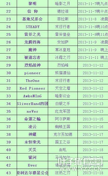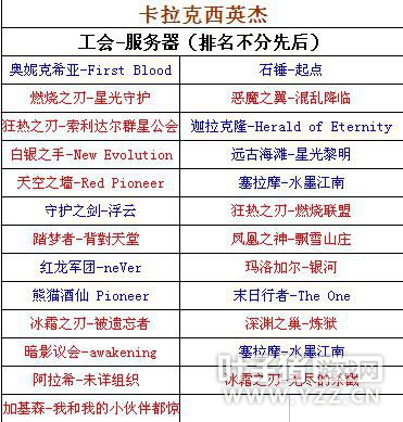 除上述公会之外,目前还有50家公会跨过了25H黑索这道坎。跻身国服优秀线上团行列。 它们并列第47名(25H黑索已击杀的公会,排名不分先后): 灰谷-月泽 ,贫瘠之地-苍穹 冰风岗-Change ,影之哀伤-杀戮 红龙军团-十年 ,燃烧之刃-星光守护 冰霜之刃-无尽的杀戳 ,寒冰皇冠-star 踏梦者-背對天堂 ,风暴之怒-荣耀二零零八 冰风岗-星 痕 ,石锤-起点 铜龙军团-dust wind ,燃烧平原-微笑的天空 烈焰峰-神一州一行 ,冰霜之刃-圣战学院 蜘蛛王国-凌云 ,兰娜瑟尔-倾 城 之 洛 恶魔之翼-混乱降临 ,阿拉希-未详组织 阿尔萨斯-命運之輪 ,巫妖之王 那时花开 主宰之剑-永恒理想 ,燃烧之刃-黑手军团 红龙军团-燃烧军团 ,阿比迪斯-OneHeart 加基森-Ordinem ,古尔丹-辉耀 国王之谷-永恒荣光 ,诺兹多姆-Ever 幽暗沼泽-WonderLand ,达尔坎-伊谢尔伦 戈提克-裂痕 ,德拉诺-网购上京东一游戏玩魔獸 风暴峭壁-浮士德 ,贫瘠之地-逐風 荆棘谷-pve is hard ,深渊之巢 EvilCranialShell 提瑞斯法-悦来客栈 ,凤凰之神-飘雪山庄 克尔苏加德-Nemesis ,格瑞姆巴托-糖乄罐 血吼-冰封 ,雷斧堡垒-Second To None [编辑:不详]