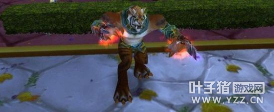 十二英尺高的老虎 想要变成上图的效果可不容易,这主要是因为相关的道具已经无法从游戏中获得。如果你运气够好,曾经收集齐60年代旧版本祖尔格拉布掉落的“亚尔罗之握”和“赛卡尔之握”,或者你的好友拥有这对拳套,你们就可以联手上演这场好戏。同时装备这两把拳套的玩家在攻击时有一定几率将会获得增益“原始祝福”,同时变成成为高大的、站立姿态的老虎。 下面就是变身的步骤,和一个玩家决斗,然后只用自动攻击,等待这个效果触发。当变身效果出现后,让你的对手喝下幻觉药水,这样他们就成功变身了。当你的“原始祝福”增益消失后,站在对手的身边喝下幻觉药水,这样你自己也变成了老虎——除非药水效果消失,你是不会变回人形的。邀请你的好友,变身成一队老虎,然后去迷惑周围的玩家吧!幻觉药水可以作用于任何触发型的变身效果,如果你有死亡使者的意志,你也可以尝试一下。