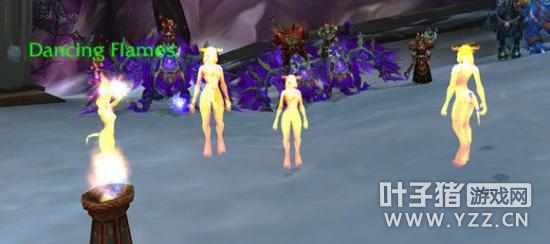 燃烧的女德莱尼 如果你拥有烈焰舞娘火盆,那么肯定对这个形象不陌生——对着火盆跳舞可以让你变身成一名妖娆的女性德莱尼人。然而,如果你在周围其他的烈焰舞娘的身边喝下幻觉药水,你也将化身成为燃烧的女德莱尼。可以到处跑动,也可以进行攻击——你也可以跟着大家一起跳舞,但既然你已经自由了,为什么不去做点别的“好事情”呢? 燃烧的女德莱尼浑身都会散发出耀眼的火光,你将很快成为众人的焦点,特别是当其他玩家还在翩翩起舞的时候,你却可以到处跑、施法,或者是做些别人办不到的事情。