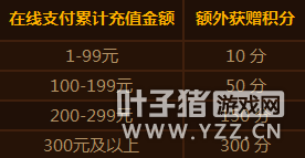 在12月20日0时至1月5日24时期间,通过战网在线支付(转跳至下方锚点: 1,登陆战网…)充值,除获得正常积分外(1元=1积分)还可获得额外积分奖励(详见下表),充值越多获赠积分越多。我们会在活动结束后,计算您在活动期间内在线支付的总金额,统一发送相应的获赠积分。
