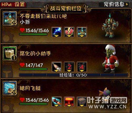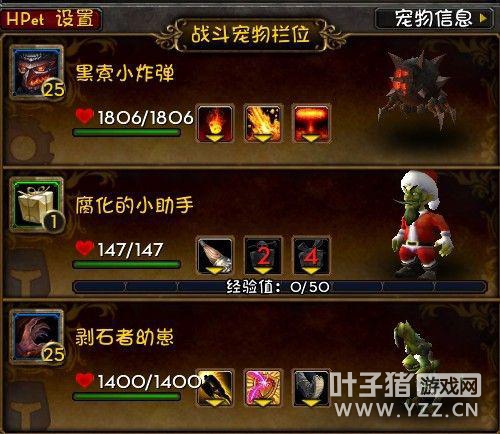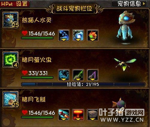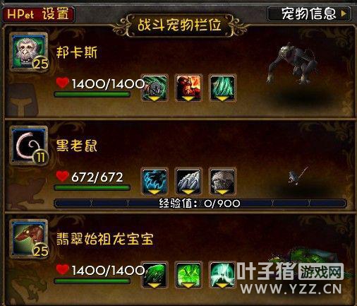 获取方式:SOO黑索掉落 (。。括号等于“AH超便宜”) 属性:蛮多的,训练师更倾向于高血带自爆的 用途:没有地狱火,又需要1V2元素宠的时候 优点:好用,我觉得蛮好看的也。。。不太怕元素NPC的机械宠之一 缺点:基本没有 2带1训练师组合推荐 接下来在这楼,我会给出一个我所尝试过的最稳定效率的2带1所有训练师配队方案。 但是训练师的图片就不给了好么,因为我发现我貌似不小心吧训练师打完了。。。SO。。实在不行以后再补吧。 至于我打训练师的整体思路是,小宠能不出场,就不出场。实在要出场,死了1个上去立马下来。 所以我的配队方式更倾向于1V2+1强力收割。 顺便说下请原谅我不记得那些训练师的名字。。 然后下面的图片,带1级宝宝的就是可以带1级宝宝的,不然就根据图片上小宠的血线造成AOE安全血线。。 技能也就是配好的技能,我就直接写按1按2了。。。 那么接下来,办真事儿吧,先是给包包的那些 1 影月谷
