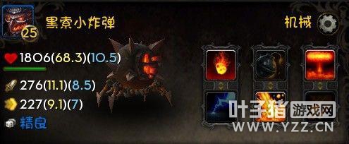 获取方式:卡拉赞馆长掉落(AH超便宜) 属性:蛮多的,但是我喜欢高攻击的。。(因为它没高速的……) 用途:在不需要带小宠的时候代替飞艇做收割者 优点:粒子炮呵呵呵…… 缺点:技能CD太长 4 黑索小炸弹