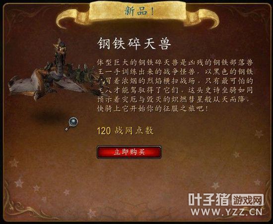 钢铁碎天兽降临游戏内商城 售价120战网点数