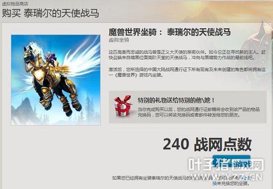 “泰瑞尔的天使战马”终于开卖 售价240战网点
