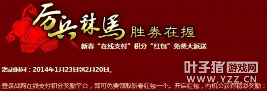 万马奔腾大抽奖,坚持参与即有神秘礼包 这个活动适合那些“抽奖爱好者”,活动将于近日开始并持续至2月12日,奖品非常丰富,包括联想新款笔记本电脑、移动硬盘、部落/联盟专属坐骑(2014匹噢),以及能开出多种有趣道具的新春礼包!另外,无论中奖与否,只要在活动期间参与抽奖达到10天,就肯定能获得神秘的新春礼包,至于里面有什么给力的物品,届时参与活动就知道啦。 具体怎么抽奖?请大家留意官网,据官方透露,一个很牛X的抽奖活动页面很快将现身官网! 战网积分红包免费领,神秘礼物是什么?