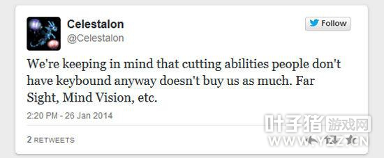 我们认为,砍掉那些玩家们没有绑定快捷键的技能,例如远视术或是心灵视界,并不能很好地解决技能膨胀的问题。 那些充满乐趣的,并非每时每刻都能发挥作用的技能并不在设计师的考虑范围之内。技能膨胀的问题主要发生在那些我们时刻都在使用的技能中,暴雪想要减少玩家在BOSS战的过程中来回不停狂点的按键数量——而不是砍掉那些我们根据情况很少使用的技能。当我在使用牧师的时候,我可以用心灵视界方便地找到藏在七星殿里的队友。虽然远视术对于萨满来说并没有什么实际的作用,但是用来截图还是相当给力的。 根据 Celestalon的推特来看,似乎暴雪想要削减的是各个职业的核心技能数量——也就是说,开发团队可能会移除某个你在每场战斗中都会使用的技能。就拿盗贼来说,我完全想不到暴雪会移除循环中的哪一个技能,但是话说回来,盗贼并不是魔兽世界中输出最复杂的职业。那么亲爱的玩家,你会担心自己的某个技能被砍掉么?你认为暴雪会移除哪些技能?你觉得自己目前所玩的职业存在技能膨胀的问题么?请在下面的评论中说出你的看法。 [编辑:不详]