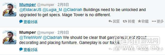 上周末,魔兽首席内容设计师 Cory "Mumper" Stockton 在推特上向玩家们透露了更多关于德拉诺之王要塞系统的消息。这些信息包括要塞的驻军,和一些要塞建筑相关的提示。 我们曾经讨论过如何让要塞更有家的感觉,有人建议如果玩家能在要塞中向他人展示自己过去所获得的成就,就会给这个系统带来更多的归属感。Mumper 提到要塞系统将会包含里程碑,通过成就获得,玩家可以把它们竖立在自己的要塞中。然而他也说了要塞系统的核心是游戏体验,而不是让玩家摆放家具或是装扮。毕竟,这不是“魔兽物语”或是“模拟版魔兽人生”。