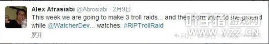 这周我们准备制作3个巨魔副本,然后当着@WatcherDev...的面毁掉他们! 好吧,明眼人都看出来这是个吐槽了。 RIPTrollRaid的意思其实是: Rest In Peace Troll Raid. 安息吧!每个版本都打巨魔,你们不厌blz都厌了!(至少6.0是不会打的,6.1和6.2嘛就难说了。)