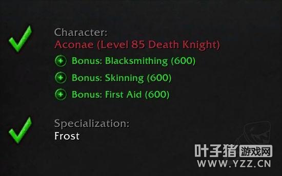购买完成 ·接下来你必须为这个角色选择一个专精,因为这将影响到你将得到哪一套初始装备。点击“叮”按钮即可完成; ·需要注意的是,1级-59级角色无法享受“经验丰富的”福利,该福利必须是60级以上角色方可获得,允许玩家将当前角色已有的专业技能提升到600;