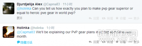 Q:你们到底怎么计划让PVP装备在野外PVP中优于或者等于英雄级别PVE装备的? A:我们计划在下个月的某个时候推出一篇博文,用于诠释我们计划对PVP装备所做的改动。(译者注:[http://wow..com/1403/259148169193.html]) A:和别的东西一样,由于某些超出我们控制范畴的因素,博文的时间表可能会有变化。