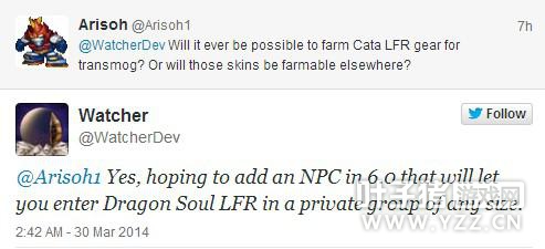 想要随机团幻化怎么办?6.0自己开团随便刷 Q:将来可以刷CTM的随机难度团本装备用来幻化吗?还是说随机版本装备外形会以另外的方式供玩家来刷? A:有可能。我们希望在6.0里添加一个NPC,他可以让玩家用自己组建的团队进入巨龙之魂随机难度,规模不限。