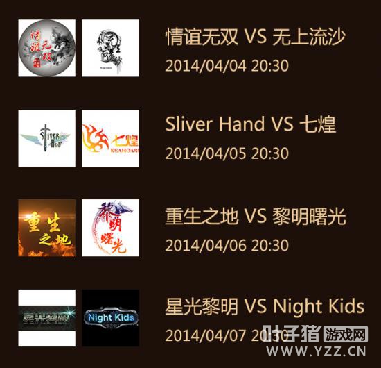 决战奥格瑞玛竞速赛复赛明晚(4月4日)20:30开战!我们将全程直播复赛阶段比赛,届时你将可以在竞速赛专题页面观看比赛。4月4日~7日以及11日~14日,每晚两支公会进行捉对角逐。以下是复赛第一轮比赛的对阵表:
