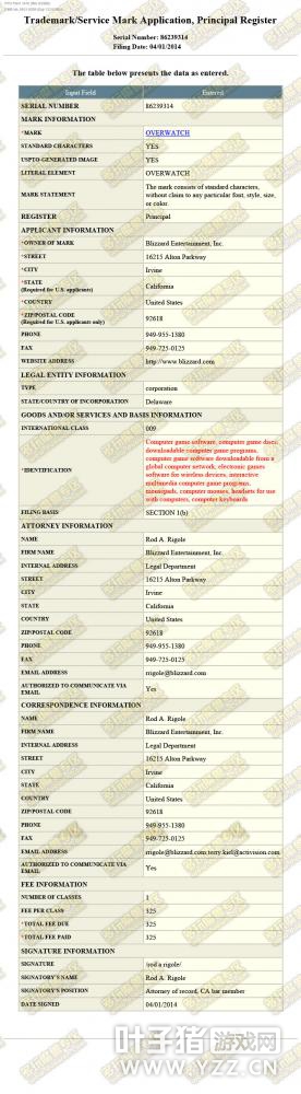 暴雪招募细节,表明这款新游戏将采用和炉石一样的小团队开放模式 当然这也可能是D3、炉石亦或者魔兽世界的新资料片,但我们希望暴雪能为我们提供新的惊喜! 下图为暴雪娱乐在USPTO的商标申请表: