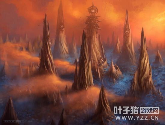 我们的设计团队希望至少可以尝试下地形编辑器,所以他们做了个自验证程序,看地形编辑器到底能做到什么程度。我们很多人都参与了阿兰卡峰林的制作,但最终由Matt Sanders(野外关卡策划)和Kelli Hoover(场景美工)完成工作。Kelli收集了很多资料并研究了原画的色彩,以期调制出独具特色的新色调。同时Matt在编辑器里制作了一个自验证程序,尝试能否使用野外地形编辑器来制作大型石峰。