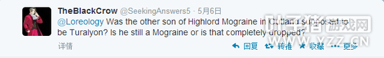 来自魔兽世界剧情组历史学家Sean Copeland的推特 Q:顺便问一句......血骑士骑军马而非陆行鸟有没有什么剧情上的缘故? A:现在还没有什么剧情性可言。也许是个人喜好? Q:在兽人的崛起开端之时,当德莱尼人来到德拉诺时他们的人数大概有多少? Q:萨格拉斯是想摧毁艾泽拉斯还是想把它当成燃烧军团的一个基地以创造出更多的混乱生物? Q:我们究竟应该怎么(翻译)尤格萨隆说的这句话? "Uulwi ifis halahs gag erh'ongg w'ssh."