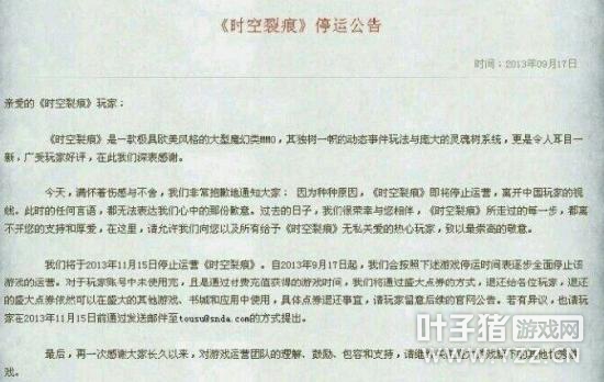 某“魔兽杀手”的停服公告 这一项其实和游戏本身没太大关系,而是关于某些运营商的坑爹举措。这里与其说是游戏到了生命周期,不如说是这些运营商没金刚钻又要揽瓷器活。某些不良企业运营了某个游戏,赚了一大箩筐,眼看形势一片大好,突然拿钱走人,销声匿迹。通常只有一纸停运公告了事(美其名曰合约到期,却从未公布合约持续到何时)。运营商在代理任何游戏产品之前都必须仔细做好市场调研和运营规划。囫囵吞枣地把游戏弄上线又无故停服的行为只会伤害玩家群体的感情,并最终对这个世界最大的游戏市场产生负面影响。这些企业的管理层把中国网游市场当成股市,赌一把赚了就走人,这种不负责任的行为应当予以谴责。并希望各大运营商吸取这些黑心企业的教训。 威胁度:2 应对难度:爆表 2:暴雪娱乐
