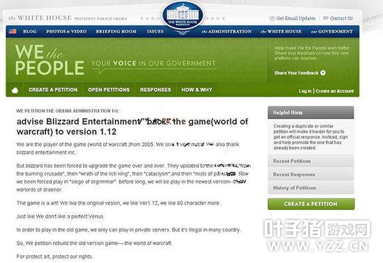 按照规定,签名支持超过10万条,白宫对此将必须做出回复 目前此条请愿已被该网站删除,那么你认为暴雪是否应该开启怀旧服务器?请在下方投票并发表评论。