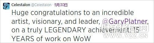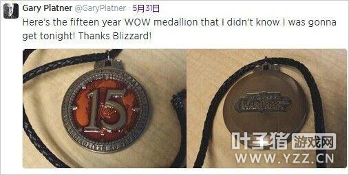 5月30日,魔兽世界设计师Celestalon在推特上祝贺暴雪首席场景设计师Gary Platner获得了暴雪总公司15年的魔兽世界贡献勋章。