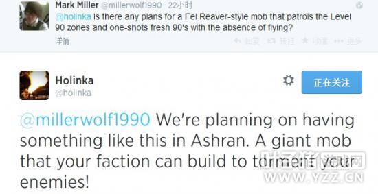 Q:既然也不能飞了,那90到100级之间有没有魔能机甲那样的在地图上巡逻,可以秒杀90级玩家的巨大怪物? Holinka:我们正在计划给阿斯兰岛加入类似机制。用你阵营的巨大怪物折磨你的敌人!