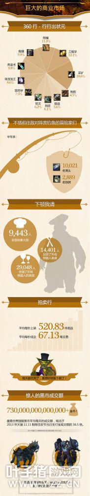 艾泽拉斯,热血从未冷,青春永无悔。 这是属于我们的时光,这是无法磨灭的记忆,这是将伴随我们一生的魔兽世界! 忆往昔峥嵘岁月,看德拉诺谁人称雄! 《魔兽世界》大数据图:第七部分“市场”、第八部分“幕后”以及第九部分“星座”的 国服相关大数据现已正式公布。个人数据统计分析也已正式登场! 黑市作为成功的回收金币手段,已累计成交 730,000,000,000,000+G(原谅我已无法数清了=。=)