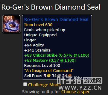 以<Method>公会一名猎人玩家Rogerbrown命名的戒指, 他在熊猫人之谜版本中是世界排名第一的猎人玩家