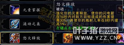 90级天赋怒火释放因为元素释放的改动,改成了以下效果。没啥影响,反正优先级一直是释放比闪电箭高。