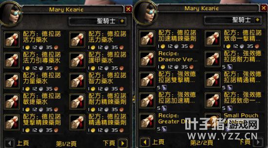 上次简单介绍了副专业,这次要来说说主专业,预制90级的骑士给了600的草药学和炼金术。(上期回顾:资料片专业技能前瞻:1-600提升测试分析) 需要再次说明的是WOD取消了服务器第一的专业成就,而目前到了700点也没有给成就,但不排除没做好。那么到700有什么好处呢?以副专业钓鱼为例,到了700会钓到普通的和巨型的德拉诺鱼,可以开出来更多的肉。下面来详细说说主专业的情况,这些是18482版本的数据,不排除以后变更的可能。 草药学 目前看来,WOD的采集业,即草药学,剥皮和采矿要想突破600点的上限,需要打怪随机掉落对应的技能书,使用以后技能上限升为700。每采集一颗草药技能提升1点,采集100颗药草以后就满了,但是生命之血技能没有提升等级,还是MOP时候的技能等级,属性压缩后是144点急速等级,持续20秒,2分钟CD。而草药技能提升的作用是提高单颗草药能够采出来的草药数量。目前测试服的数据是600技能点时,一颗可以产出4-5个草药,而到了700技能点,一颗就可以产出13-15个草药。这算是对WOD不能飞的一种补偿了。草药学可以说的不多,下面详细说说炼金术。 炼金术 炼金术的提升和要塞的炼金实验室有紧密联系,对于600级的联盟人物来说,完成了初始登陆任务之后,有任务指向地图中间安泊尔村,完成那里的一系列任务后会得到一个木箱,开启后会得到一个任务物品。