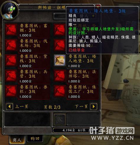 完成成就以后,可以在NPC处购买3级矮人地堡图纸