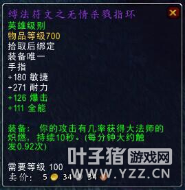 触发效果根据戒指等级有所加成,具体效果为使你的主要属性(敏捷,智力,耐力)提高10%或15%。