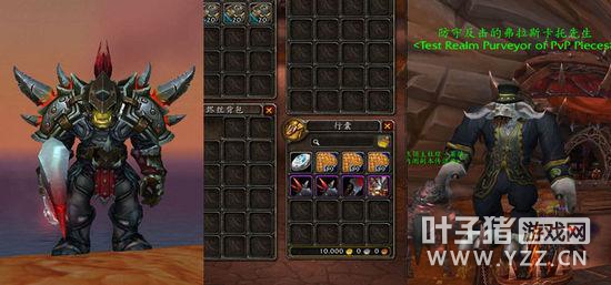 按照美服的习惯,完成角色创建后,你角色全身会附带一套蓝色或紫色品质装备(取决于你所在的服务器,PVE为蓝色、PVP为紫色),背包也附带一定数量的金币;在两大主城的门口,也就是联盟暴风城贸易区/部落奥格瑞玛力量谷,会有相应的任务提示在等候接受测试的你。另外,还有两头测试服专用的装备贩卖大牛售卖高等级的的装备,测试服贩卖的主要偏重PVP装备。