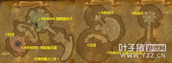 B组入口那个位置是电梯,然后要线性打掉548号BOSS。9号BOSS也在这张图上,可以猜到击杀之后是从B组入口回到副本门口那边。 目前知道的Raid副本结构就是这样,不排除暴雪以后改动的可能性。