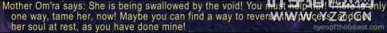 奥穆拉祖母:她被虚空吞噬了!你要救她!唯一的办法就是驯服她,马上!也许你能逆转这个过程,让她安息,就像你帮助我那样!