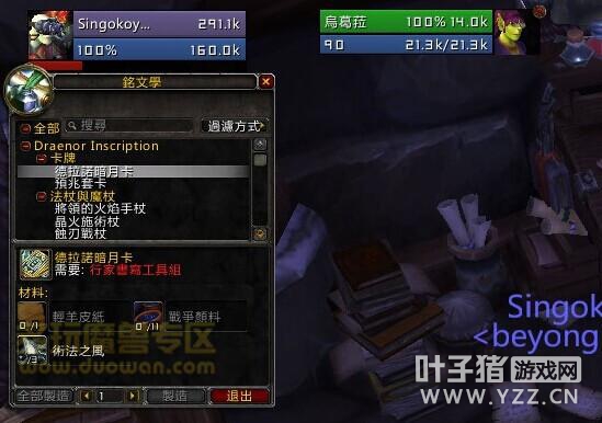 在铭文师之家我们可以下订单制作 [战争颜料],这一颜料是《德拉诺之王》里铭文专业最重要的材料,比如制作新版暗月卡牌就必须要这个。