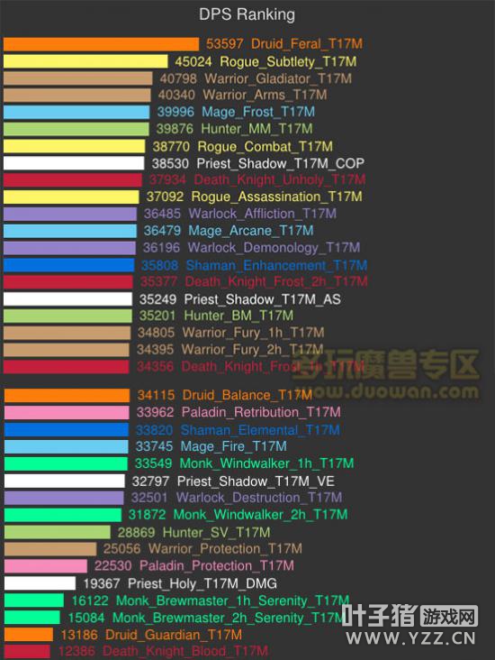 以下是《德拉诺之王》昨晚更新的最新版本(18922build)的PDS模拟情况,模拟环境为6.0顶级装备史诗难度T17。 模拟出来的DPS排名情况:依然是野德最高,敏锐贼第二,防战角斗姿态与武器战分获三、四,而输出专精倒数一二三的分别为生存猎、双手风行武僧以及毁灭术。 附:上一版本DPS模拟情况、23日更新18922build各职业改动