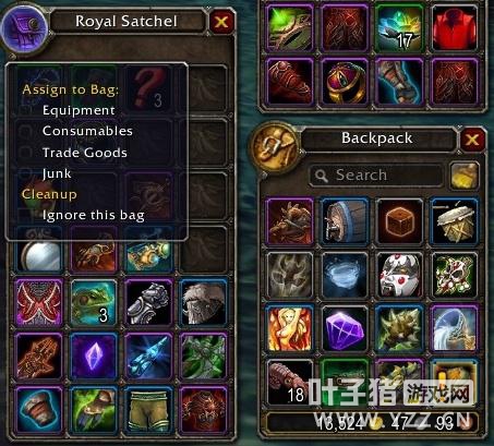 制作材料的堆叠数量更多了。比如【锡矿】在潘大利亚的时候是20个一组,而在德拉诺之王中,它会变成200个一组; 灰色物品目前会在左上角显示金币的图案来提示玩家可以出售给供应商; 背包会有一个“清空”选项整理你的背包。同时你还可以设定每个背包的类型:装备,消耗品,商人或者垃圾。点击行囊上的页面可以将物品放到制定类型的背包中,同时当你管理背包市也可以设定忽视哪一个背包;