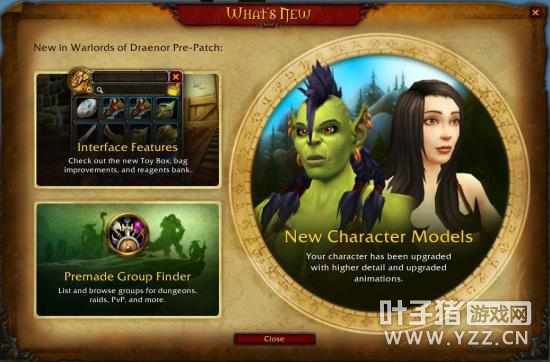 当新玩家进入魔兽世界的时候,会跳出一个页面介绍暴雪在德拉诺之王中针对界面与用户体验进行改动的一些亮点,比如新团队搜索器与新人物模型;