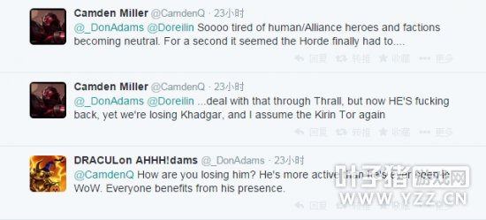 来自魔兽世界出版总监Micky Neilson和任务设计师Don Adams的推特