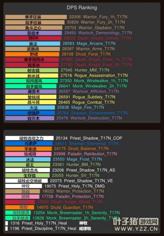 来源simc 魔兽,转载请注明 更多精彩尽在魔兽资讯 测试服全职业伤害模拟排行build19005 测试服最新DPS测试结果,模拟装备条件为T17普通难度装备(6.0史诗难度团本DPS模拟)。本测试仅供参考! 前夕上线在即你不练一个战爷侯着么:美服6.0.2前夕上线时间公布