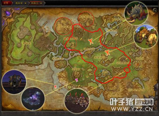 1、纳格兰有两个坐骑稀有,稀有裂蹄牛雷霆纳克在北岸,刷新区域是洛克拉斯北边,掉落[血蹄公牛];雷象鲁克胡克在南岸,似乎在岩壁峡谷附近,从有人提供的截图看是图示位置,但峡谷西北是雷象活动的区域,猜测也有可能是在峡谷周围随机刷新或巡逻,掉落[斑点草地践踏者]。这两个并不建议90级就去找,本身就需要几个98-100级才能杀死,90级很难命中,加上周围都是100级怪物,北岸更是都是精英怪。 2、岗哨可选择建兽栏或攻城车间,前者的区域技能是100%地面坐骑,可骑着在室外拾取任务物品、读条和战斗,对远程比较有用。后者是提供一辆坦克,被摧毁后有10分钟的冷却。如果是组队或装备很好可选择坐骑提高效率,但装备较差的话,靠坦克可单挑一般的稀有,并在多数怪物碰到你之前将其轰杀,对付下面提到的领军托姆拿玩具也很有用。 3、沃舒谷南边稀有灵魔掉宠物[灵魔,灵魔之子],西南铁拳港船上稀有铁钩船长掉玩具[钢铁海盗帽],但是都不顺路,在沃舒古进行的任务线也是在北侧和内部。 4、100级稀有领军托姆小几率掉玩具侦查骑兵的缰绳,他在试炼竞技场南边的苦痛岗哨中间刷新,沿路巡逻一圈回到岗哨消失,约15分钟后重新刷新。除非组队否则练级时最好避而远之,特别是在岗哨做任务的时候要小心,因为他带12个骑兵,在他身边40码内就会提高领军和其他骑兵伤害20%,可叠加。组队的话多人使用坦克的AoE技能速度秒掉骑兵才好打。 |