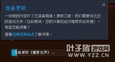 魔兽世界6.0前夕国服客户端已经开放下载了!6.0全新的压缩格式使得部分玩家在更新过程中遇到了一些小小的难题!为此,小编整理了这篇关于6.0前夕客户端更新的小问题及注意事项,希望能为大家的更新带去力所能及的帮助! 预下载补丁 在今日的更新之前,玩家需要先下载过一个10多G的预下载补丁文件。假如你在前一段时间没有更新的话,那么今天只需要打开战网客户端即可下载预下载补丁,完成之后才会进行下面的更新。 注意:在打开战网桌面更新时,不要做其他操作,因为这次更新会优化游戏文件,期间可能会导致你的机器运行速度变慢,大家耐心等待即可! 客户端更新流程 如果你已经下载完预下载补丁,那么当你打开战网桌面时他会进入更新状态,首先会出现如下文字: