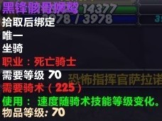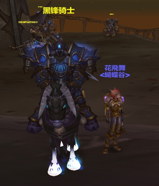 一个姐妹今天在东瘟疫挖矿,被卡在病木林,炉石摧毁以后脱离卡死无效~ 于是联系了GM,GM了解情况后,说会在短时间内传送她至最近的主城! 于是,几分钟后,蓝光一闪,叮~~~ 她被传送去了DK的主城!!! 她回过神后开始参观,发现主城内一切相当完善,包括npc,骷髅飞龙,各种该有的都有。。。 黑峰骑士 逛了一圈,发现卖东西的npc出售DK的坐骑[黑锋骸骨狮鹫],无奈价格过高,她就没买。。。 DK坐骑~