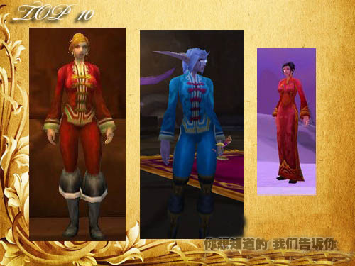 发表时间:2009-09-13作者:wuson来源:未知优惠魔兽世界点卡购买艾泽拉斯大陆上,有一群有爱的玩家,收集着一件件美丽的衣裳。如果你正在,或准备,或者将来会,吸引一个女孩子来玩魔兽世界的话,请千万记得收藏本页,这些内容将为你的说服力增加更大的筹码。同时,仅以此文献给在艾泽拉斯大路上游历的所有女性,愿你们永远美丽! Top10:春节的节日服装 春节的节日服装,相当有中国特色,盘扣,立领。大红色的旗袍显得喜气洋洋的。 |