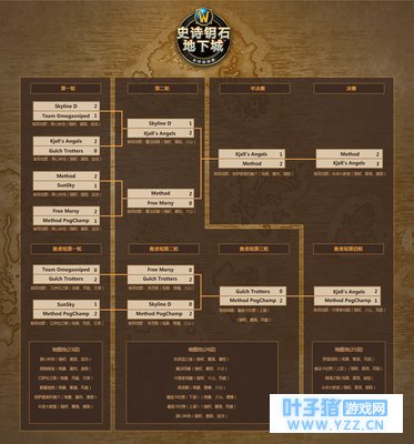 败者组第三轮,Method PogChamp与Gulch Trotters展开了交锋。首局重返卡拉赞(上层)(强韧、震荡、死疽),双方原本进度相当,但Gulch Trotters在三号首领处的减员以及之后处理法力浮龙时的团灭使其输掉了本局。第二局英灵殿(残暴、易爆、火山),频繁的减员依然是Gulch Trotters最大的问题,稳扎稳打的Method PogChamp以0死亡的成绩取得了比赛的胜利。 败者组决赛,Kjell's Angels与Method PogChamp在守望者地窟(强韧、火山、死疽)打响了首局战斗,双方各有失误,但Kjell's Angels的推进速度要强于对手不少,顺利先下一城。第二局噬魂之喉(残暴、震荡、崩裂),Method PogChamp展现了他们关于这个地下城的独到心得,Kjell's Angels在二号首领处的团灭让他们处于劣势,挑战海拉时的阵亡更是雪上加霜,Method PogChamp扳平了比分。决胜局群星庭院(残暴、繁盛、死疽),Method PogChamp在处理小怪时如同深陷泥潭,不断攀升的死亡数宣告了他们无缘决赛。 最终的决战发生在Method与Kjell's Angels之间,两支队伍曾在胜者组决赛中交手,但这次Kjell's Angels没有让机会从手中溜走。首局永夜大教堂(强韧、震荡、激励),两支队伍的表现都很稳健,Method在首个首领处就占据一些优势,他们依靠稳定的表现不断扩大优势,率先完成了地下城。然而Kjell's Angels很快在守望者地窟(强韧、火山、死疽)还以颜色,Kjell's Angels展现了很高的稳定性,而Method则在处理小怪时的一波团灭后再也没能追上对手。第三局重返卡拉赞(上层)(强韧、震荡、死疽),双方都在处理法力浮龙时产生了不少的死亡数,但Method始终保持进度上的领先,再得一分。比赛来到群星庭院(残暴、繁盛、死疽),Kjell's Angels依靠对地下城的深刻理解,在处理小怪上节省了许多时间,这帮助他们再度追平了比分。决胜局奈萨里奥的巢穴(残暴、重伤、激励),双方可谓旗鼓相当,在进程上没有拉开太大的差距。略微落后的Kjell's Angels选择在二号首领的斩杀阶段使用嗜血,第三次嗜血则在最终首领血量过半时可以使用。Kjell's Angels的决定帮助他们比对手多出了一次嗜血,并最终取胜。让我们再次恭喜Kjell's Angels! 最后附上决赛视频 上半部分 下半部分 [编辑:叶子猪小秘书]